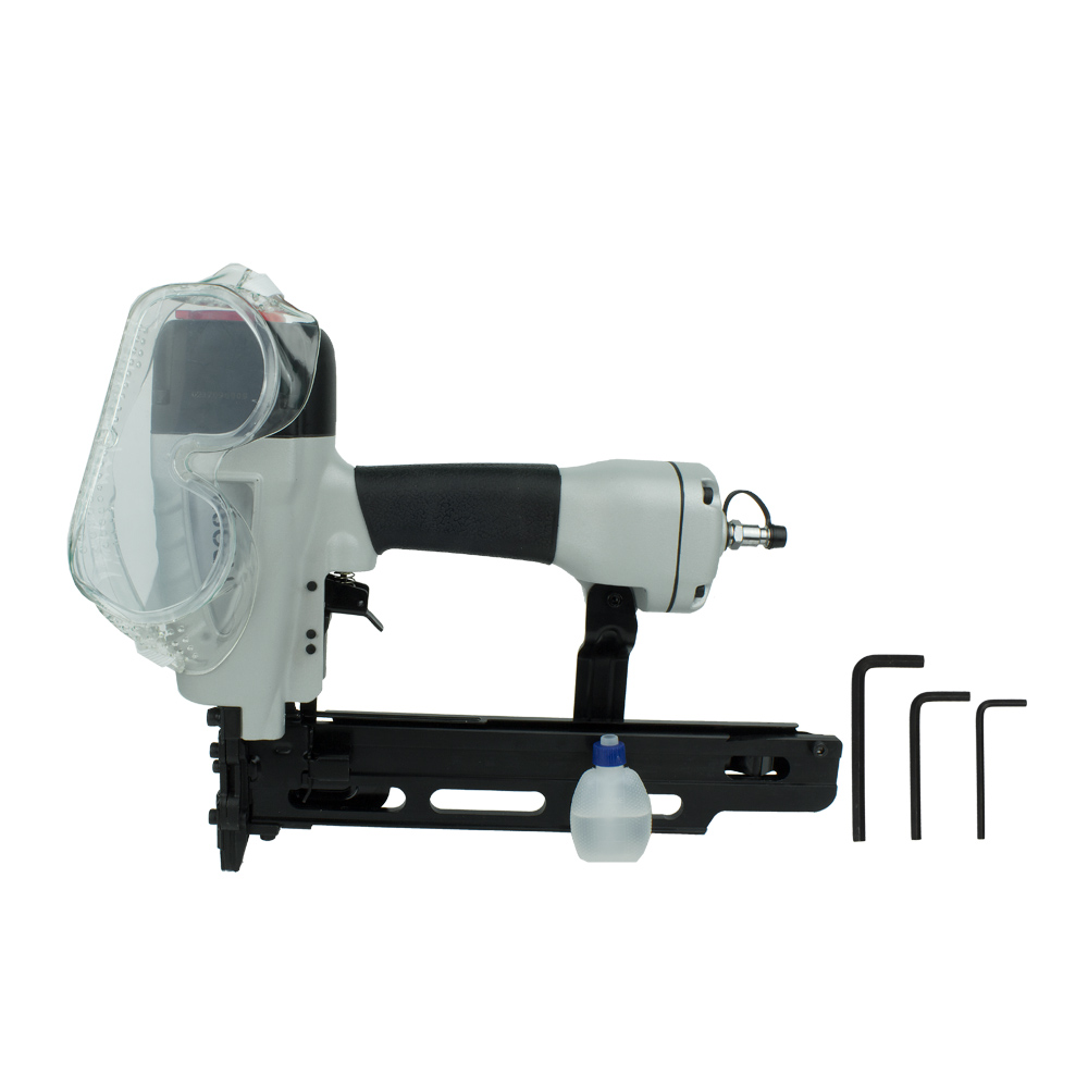 Пневмопистолет данного типа модели FROSP K-N851 имеет компактные размеры и относительно небольшой вес. При этом обладает высоким качество работы, надежностью и долговечностью. Работает со скобами, ширина спинки которых составляет 10,7 мм, а длина – 19-50 мм.